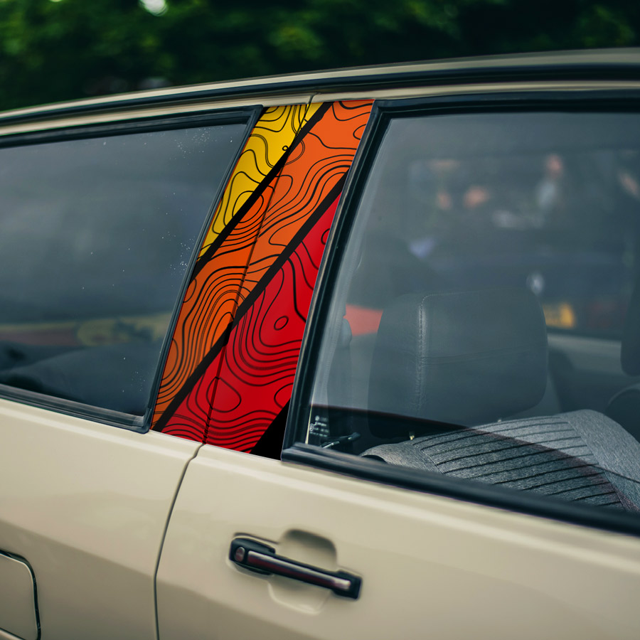 TEQ v2 Yellow Orange Red Stripes Mountain Topography Vintage Retro Classic Heritage Rising Sun Racing Development JDM Printed Car Door B Pillar Vinyl Wrap Sticker