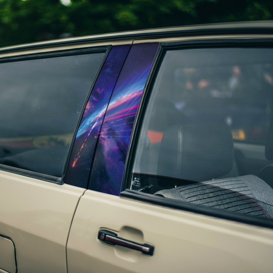 - Quantity: 1pc sticker. Please note that this listing includes a single sticker for one side (Driver or Passenger) unless otherwise selected. To receive a pair of stickers for both sides of the car, please choose the 'Both Sides' option in the 'Set of Pillar Stickers' section. An automatic discount is applied if you add a pair of Pillar Stickers to your cart.