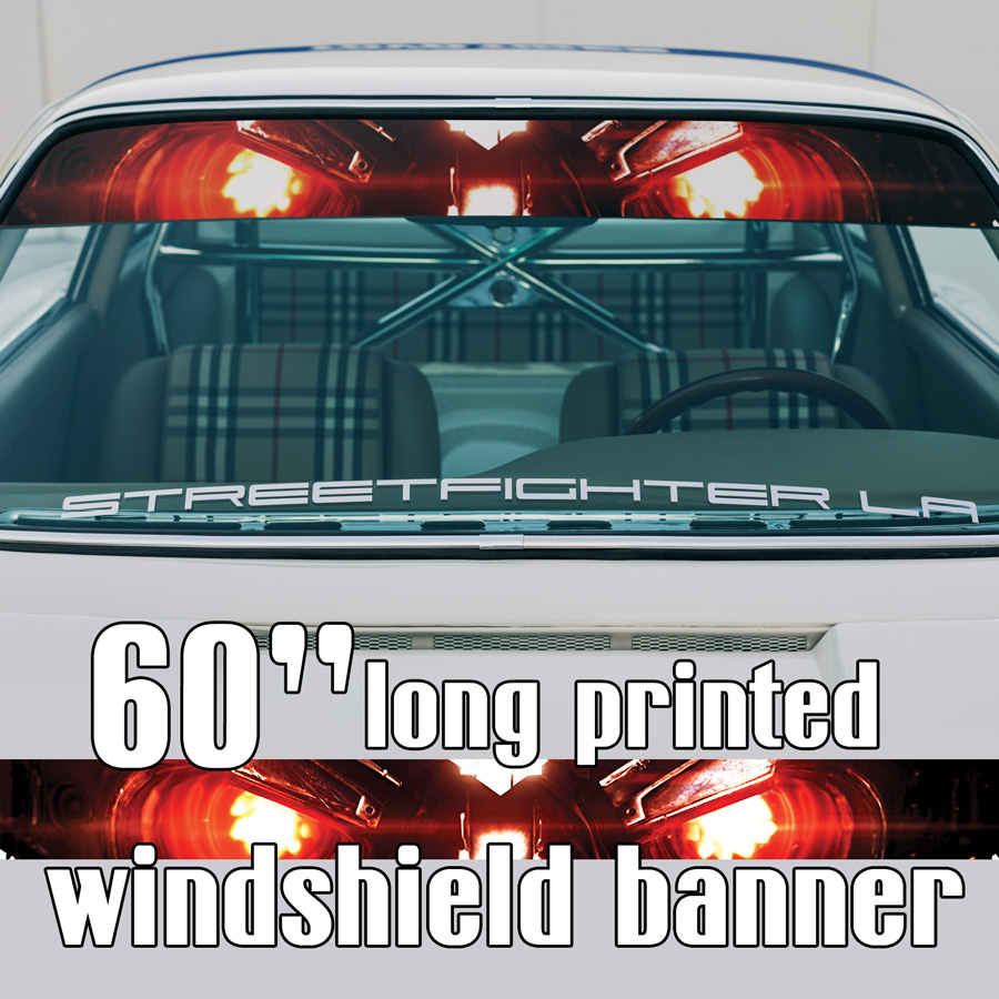 60" Fire Flame Eyes Soldier Sun Strip Printed Windshield Car Vinyl Sticker Decal