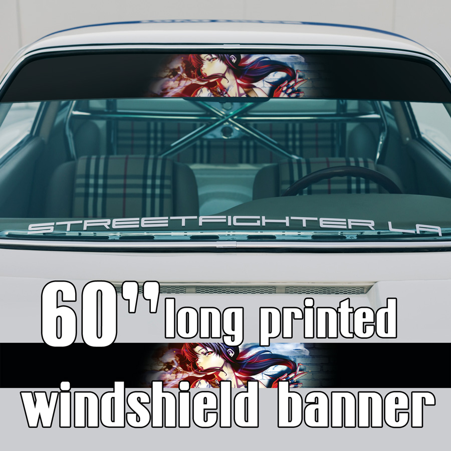 60" Revy Rebecca Lee Two Hand Guns Beretta Sexy Guns Anime Girl Manga Smoke Sun Strip Printed Windshield Car Vinyl Sticker Decal