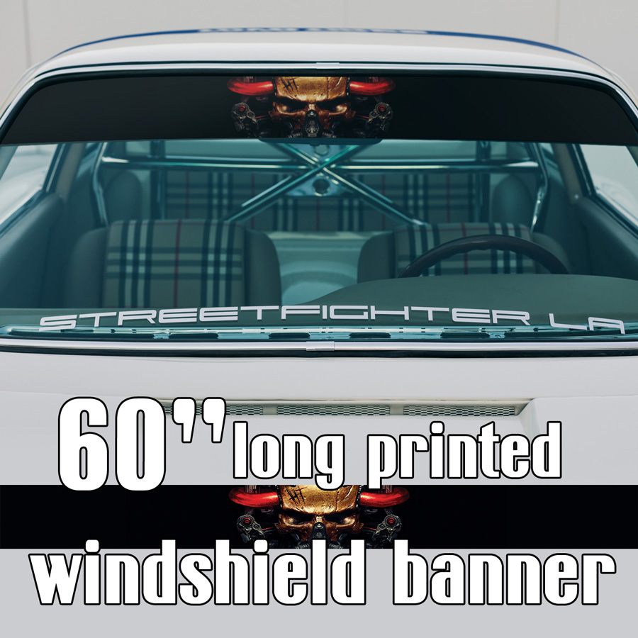 60" Skull Steam Cyber Punk Blood Metal Strip Printed Windshield Car Vinyl Sticker Decal