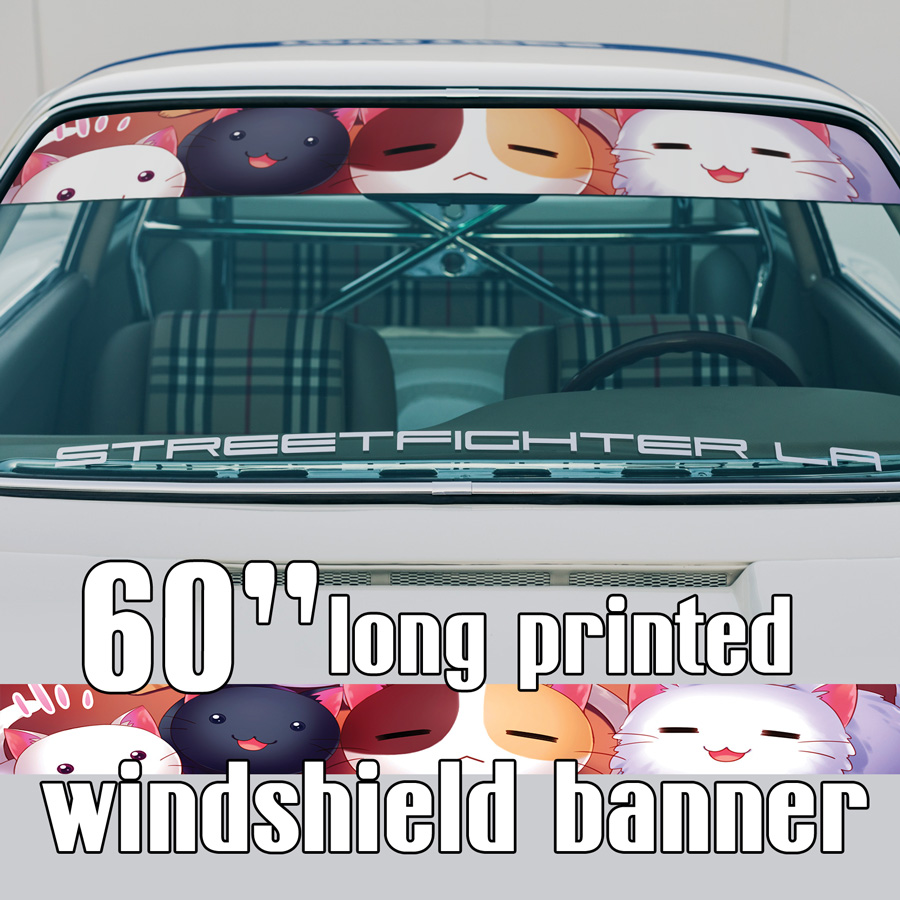 60" Cats Cute Girl Woman Sun Strip Printed Windshield Car Vinyl Sticker Decal