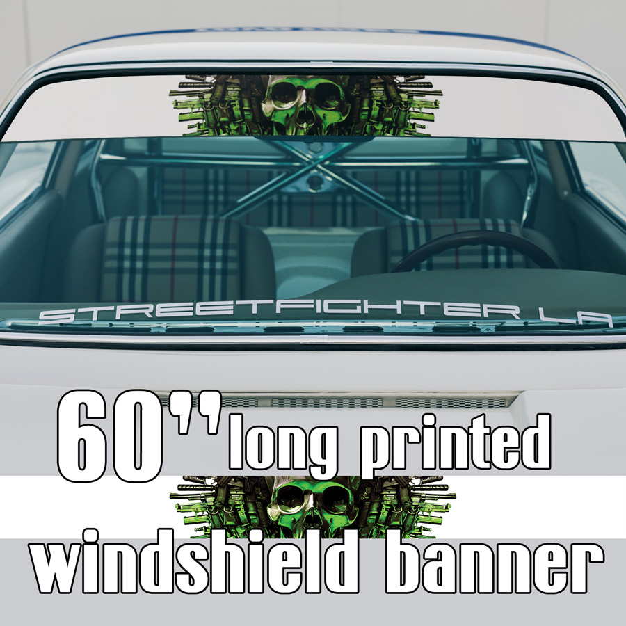 60" Skull Guns Metal Army Sun Strip Printed Windshield Car Vinyl Sticker Decal