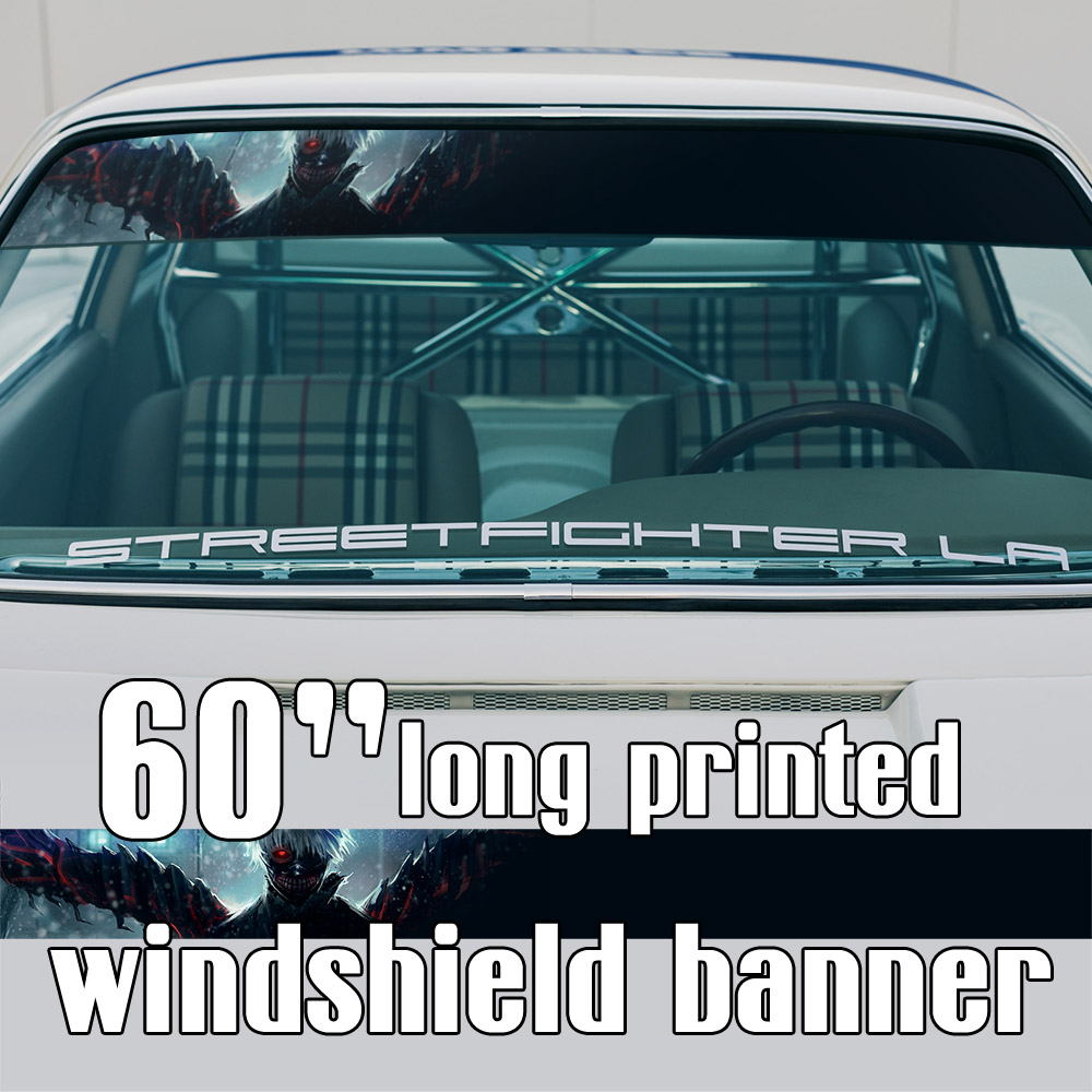 60" Ken Kaneki v6 Mask Blood Manga Anime Sun Strip Printed Windshield Car Vinyl Sticker Decal