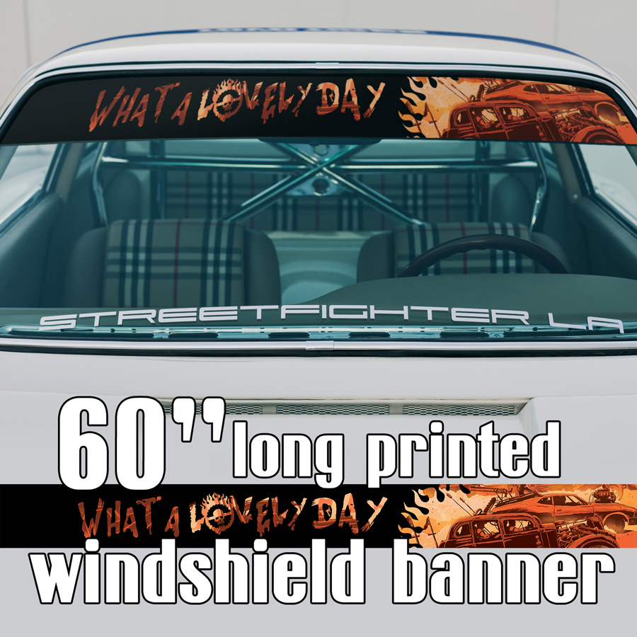 60" Fury Road What Lovely Day Skull Sun Strip Printed Windshield Car Vinyl Sticker Decal