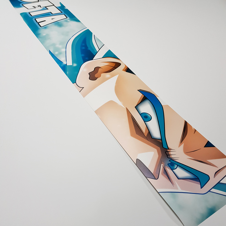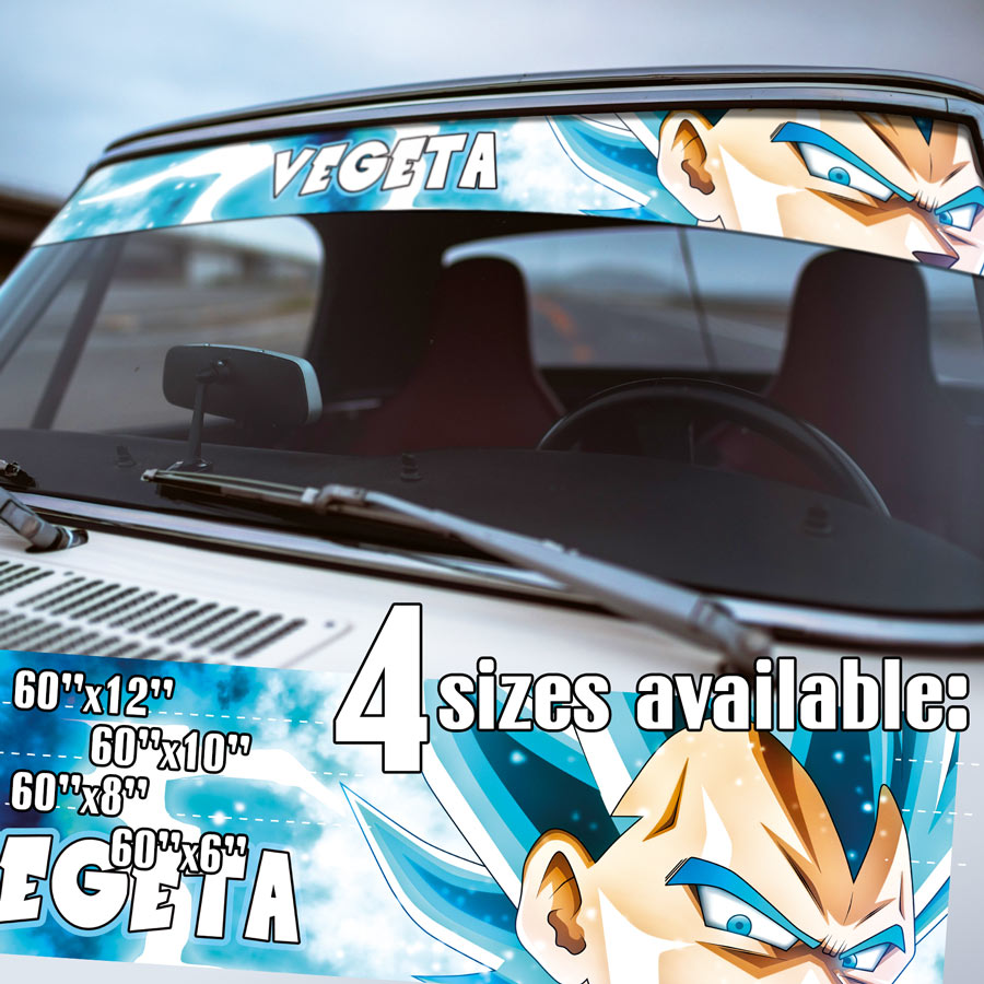 60" Blue Vegeta v1 Prince Fallen Saiyan Armor Bodysuit Universe 7 Frieza Force Z DBZ Manga Anime Sun Strip Printed Windshield Car Vinyl Sticker Decal