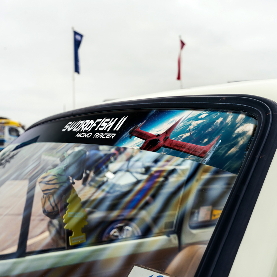 60" Swordfish II MONO Racer Cowboy Spike Spiegel Anime Manga Sun Strip Printed Windshield Vinyl Sticker
