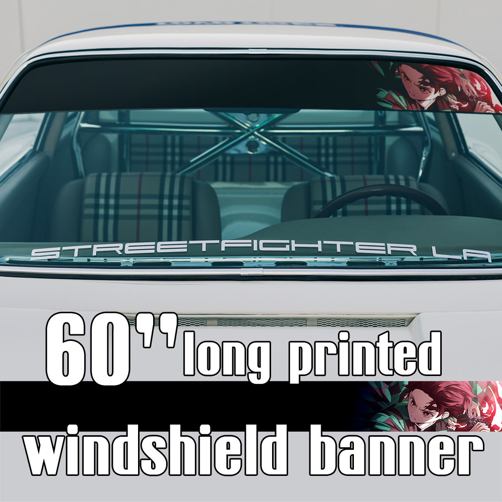 60" Tanjiro Kamado Nezuko Giyu Tomioka v1 Anime Manga Sun Strip Printed Windshield Car Vinyl Sticker Decal