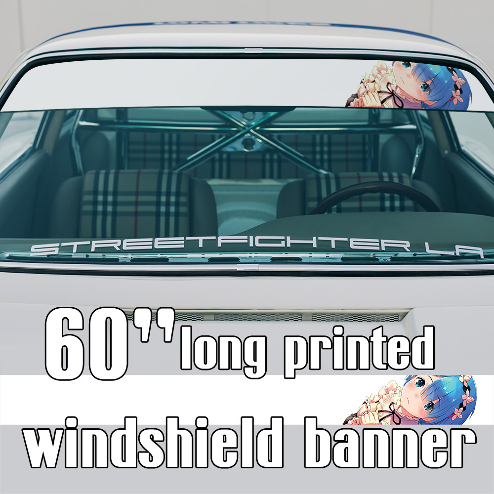 60" Rem v2 Blue Twin Maid Roswaal Mathers Water Magic Lye Oni Girl Kawaii Girl Manga Anime Sun Strip Printed Windshield Car Vinyl Sticker Decal