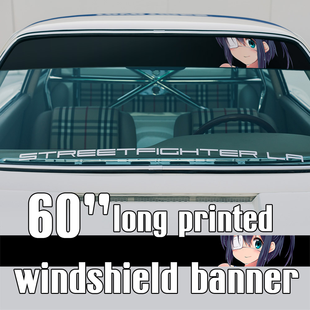 60" Rikka Takanashi Tyrant's Eye Patch Far Eastern Magic Napping Society of Summer Waifu Senpai Manga Anime Sun Strip Printed Windshield Car Vinyl Sticker Decal