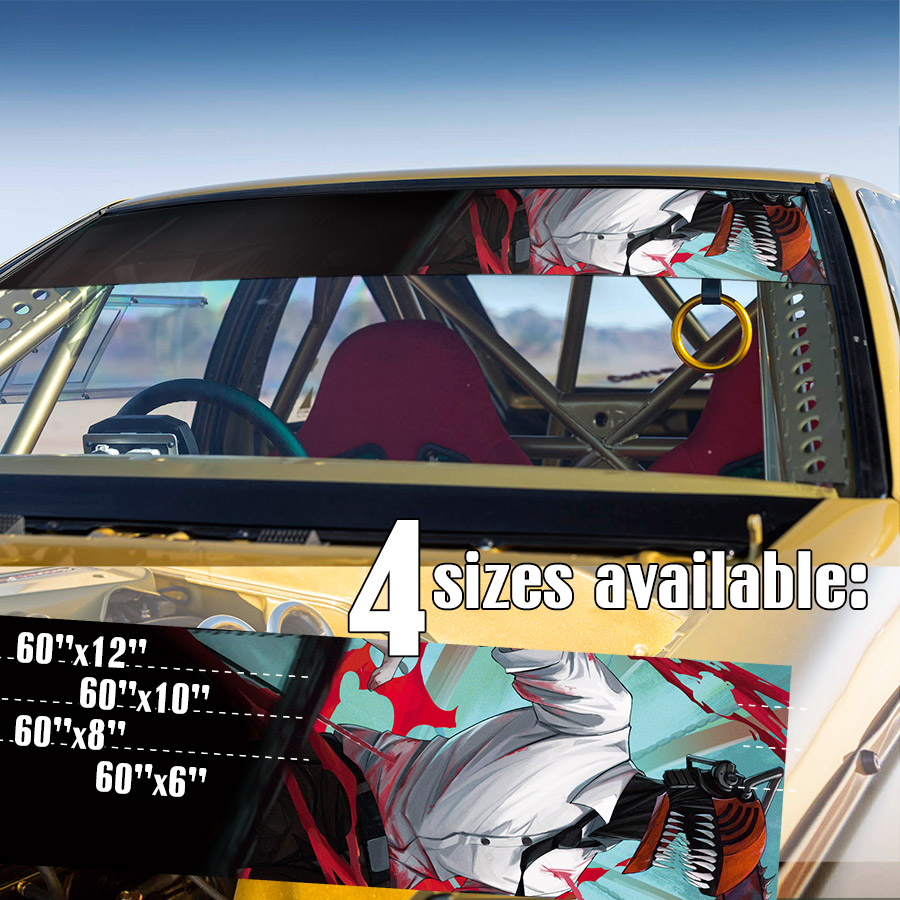 60" Denji v11 Public Safety Devil Hunter Pochita Saw Makima Squad Manga Anime Strip Printed Windshield Vinyl Sticker