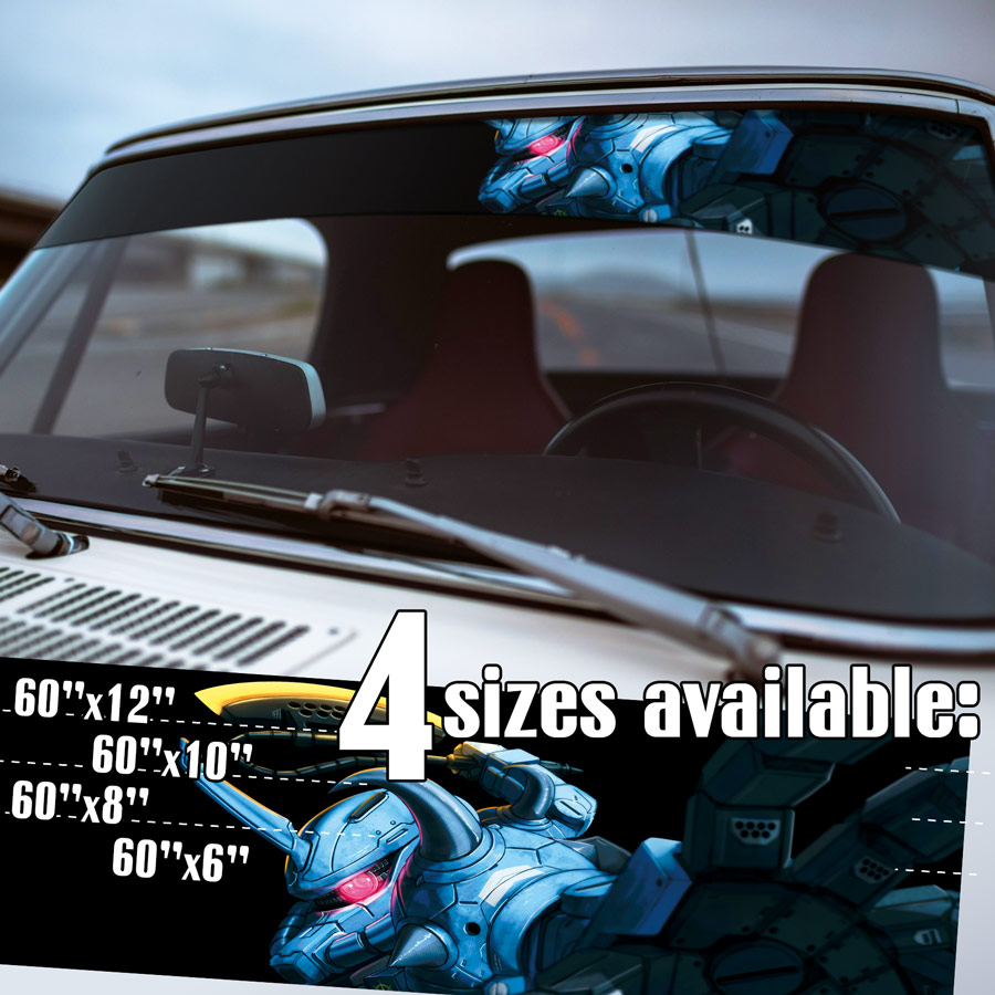 60" MS-07B Gouf v4 Ramba Ral Combat Ground Type Axe Principality Of Zeon Space Strike Fleet Mecha Robot Zeonic Anime Manga Sun Strip Printed Windshield Vinyl Sticker Decal