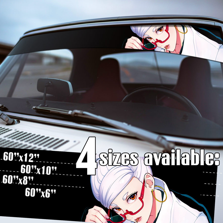 60" Seiko Ayase v1 Santa Dodoria Nana Smoking Paranormal Turbo-Granny Spirit Medium Waifu Girl Anime Manga Sun Strip Printed Windshield Vinyl Sticker Decal