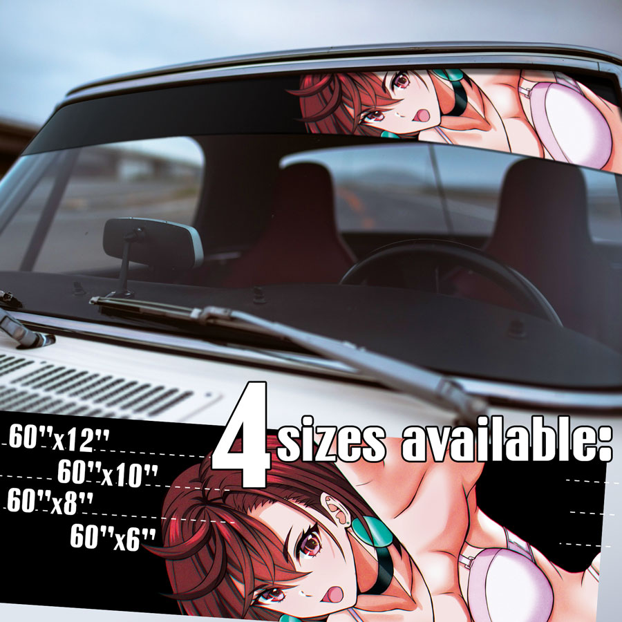 60" Momo Ayase v2 Paranormal Turbo-Granny Spirit Aura Medium Alien Earrings Okarun Waifu Girl Anime Manga Sun Strip Printed Windshield Vinyl Sticker Decal