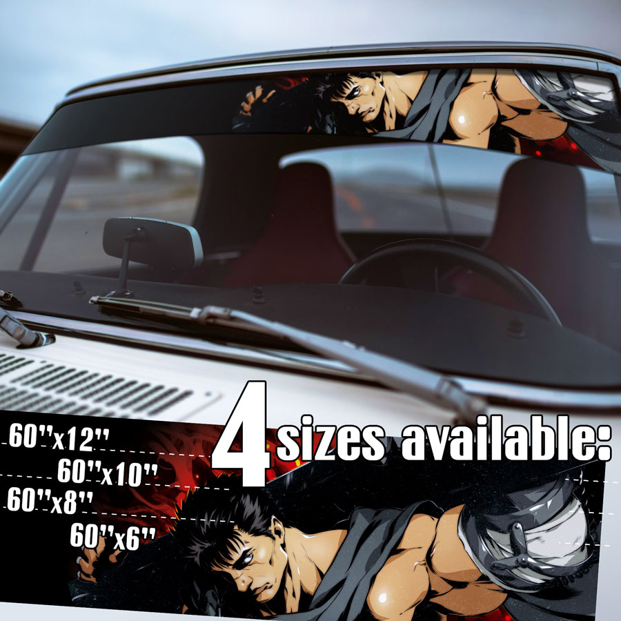 60" Guts v5 Black Swordsman Struggler Branded Falcon Armor Dragon Slayer Knight Griffith Crimson Behelit Sacrifice Anime Manga Strip Printed Windshield Car Vinyl Sticker Decal