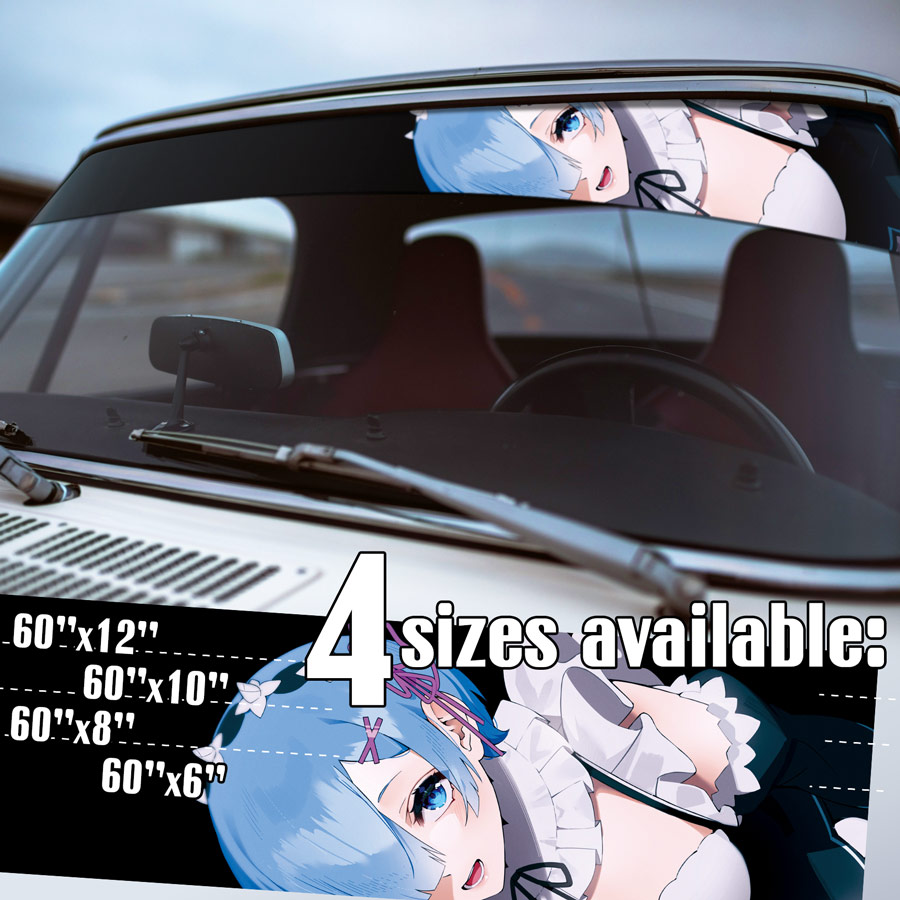 60" Rem v4 Blue Twin Maid Emilia Camp Roswaal Mathers Water Magic Lye Oni Girl Kingdom Lugunica Waifu Girl Anime Manga Strip Printed Windshield Car Vinyl Sticker Decal