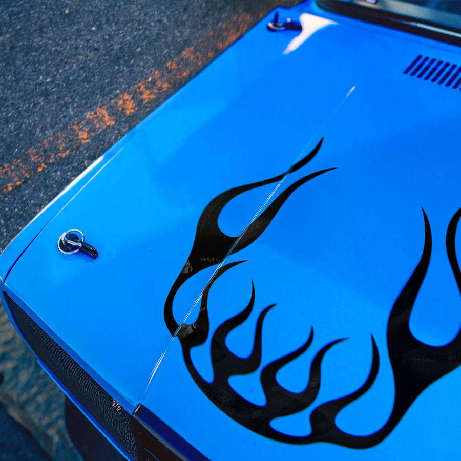 Hood Flame v1 Pinstripe Fire Tribal Hot Rod Vintage Street Drag Night Run Racing Speed Drift Circuit Outlaw Tuning Track Warrior Muscle Car Vinyl Sticker Decal