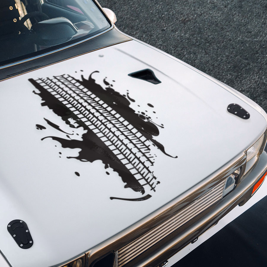 Tire Track Hood Stripe Mud Dirty Splash Supercharged Power V8 Off-Road 4x4 Monster Heavy Duty Rebel Edition Pickup Truck Road Warrior Muscle Car Vinyl Sticker Decal