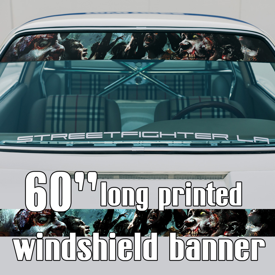 60" Zombie Walking v1 Skull Sun Strip Printed Windshield Car Vinyl Sticker Decal